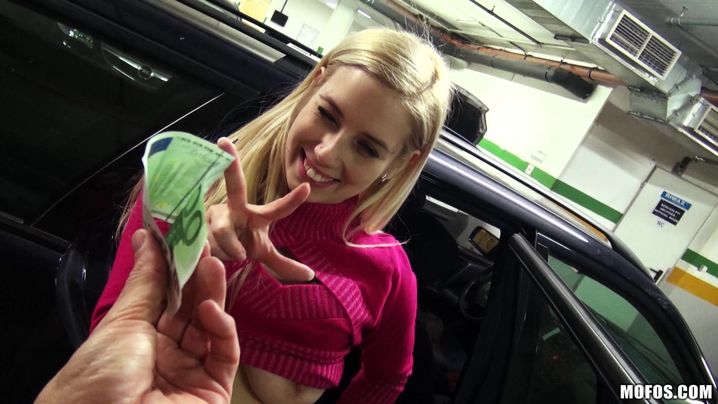 Alluring blonde minx Sydney Cole picks up a fellow and sucks his huge cock