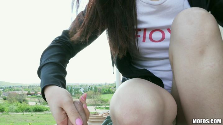 Extraordinary Sweet Sugar is gently rubbing guy's chopper with her soft feet while he is moaning