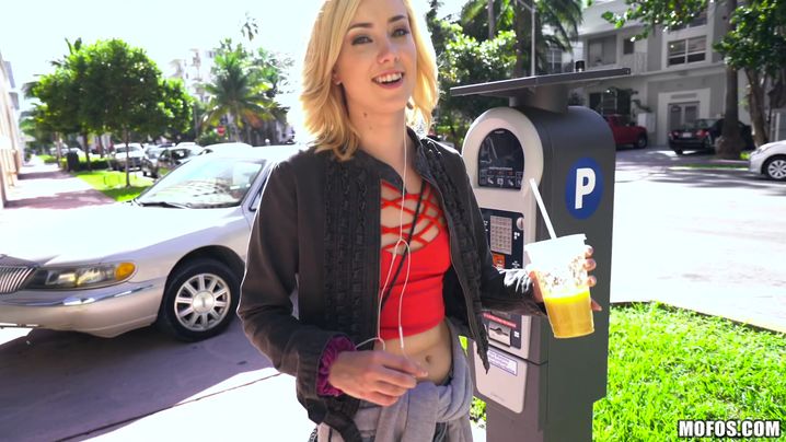 Alluring blonde minx Sydney Cole picks up a fellow and sucks his huge cock