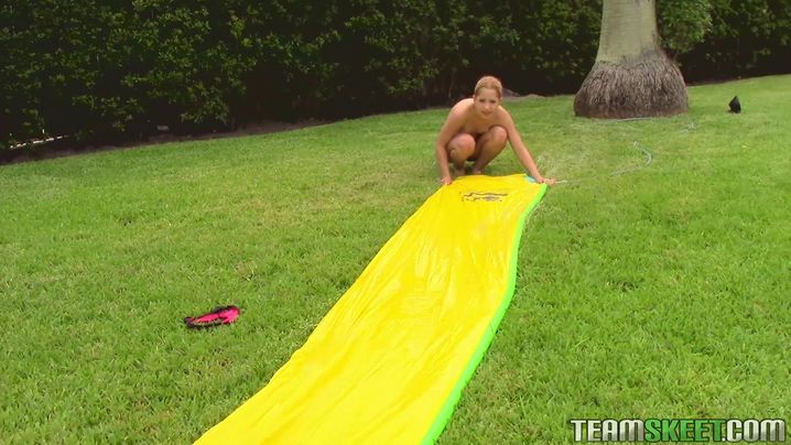 Nude young floozy Sydney gives a hard blowjob to her experienced mate